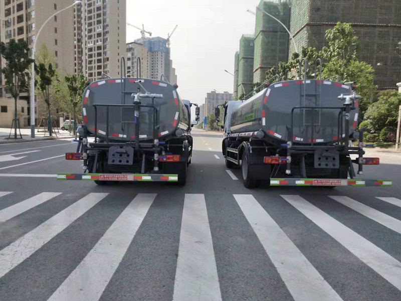 9吨洒水车厂家上装配置:罐体容积为9.5立方洒水车,新款工艺罐体,厚度为4mm碳钢Q235材质,罐内隔板具有防波作用,以减轻汽车行驶时罐体液体冲击,罐体及整车外形尺寸按照公告。带大功率专用洒水泵,泵可自吸自排,整车前冲、后洒、侧喷、高位花洒、带65消防接口,后平台带绿化洒水炮,洒水炮可全方位旋转,可连续调成直冲状、大雨、小雨、毛毛雨;前封头带水位计,后平台主管路带1寸浇花接口,后爬梯。平台后部带小安全告知牌:“随时停车,注意安全”,带两根水管及阴阳端。罐体颜色:上白/下蓝,银灰/银蓝,罐体两侧喷“洒水车、绿化洒水车”字样,贴反光标示。洒水车可加装前冲后洒气动阀驾驶室控制、可加装雾炮车机组发电机组喷雾降尘装置、车头可加装推雪雪铲、雪滚装置街道、公路除雪等。