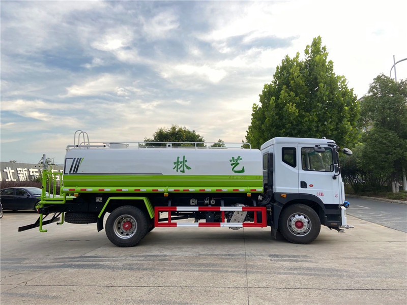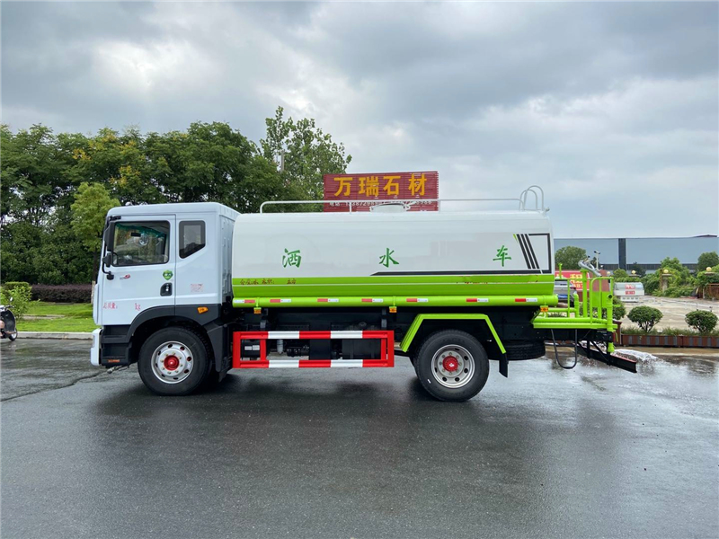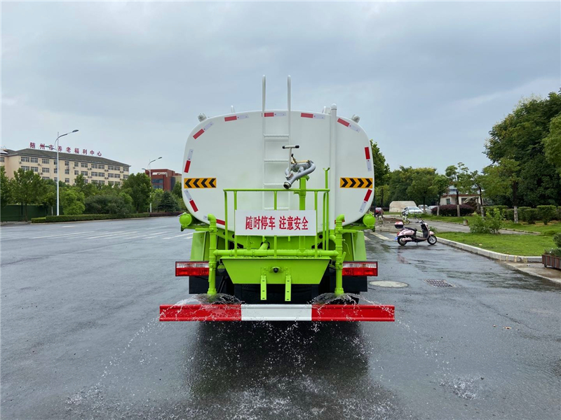 3,广西玉柴机器股份有限公司4缸玉柴200马力发动机,发动机型号YCS04200-68,法士特8档变速箱,275/80R22.5真空胎 。4,东风康明斯发动机有限公司6缸康明斯230马力发动机,发动机型号B6.2NS6B230,法士特8档变速箱,10.00R20钢丝胎。3950轴距(也可以选择4500轴距),带空调、中控锁、电动玻璃、转向器及离合器液压助力,气压制动,排气制动。洒水车专用功能配置:罐体实际容积约为12--14--16立方米,采用武钢优质碳钢板卷压成型,自动焊接。配备专用洒水泵,自吸自排,前喷后洒、侧喷、后工作平台及洒水高压炮。洒水泵自吸高度为6米左右,整车洒水宽度14米左右,后工作平台高压水炮上下左右360°旋转可调成:直冲状、大雨、中雨、雾状、有效射程≥28米,整车带接头、水位计,自流阀。后工作平台主管路带1寸浇花接口,附送2根3米水管,1个爬梯,两侧及后保险杠。 洒水车选装配置: