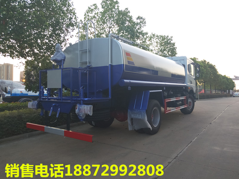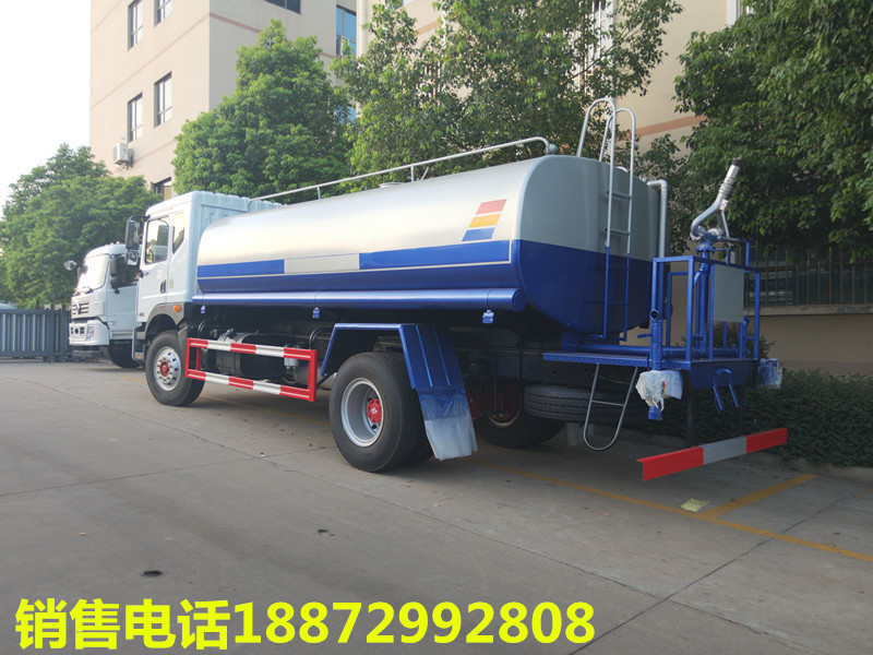 随底盘选装驾驶室;品名:水;密度:1000千克/立方米;有效容积:11.45立方米;外形尺寸长(mm)/ 轴距(mm)/后悬(mm)/罐体尺寸(长×长轴×短轴)(mm)对应关系吸程≧7米,洒水宽度≧14-16米, 射程≧25-30米,引水时间<5min,流量60m3/h。前冲(喷)、后洒、带侧喷(花洒)、带后工作平台、 平台上安装绿化洒水高炮(炮喷射形状可调节:直冲、大雨、中雨、毛毛雨、雾状、可连续调节, 360°旋转),配消防接口,自流阀,滤网,带自吸自排功能。配备大功率专用洒水泵,泵可自吸自排, 安装过滤网,带消防接口,可通过消防栓进水,带自流阀,随车选装20米绿化卷盘,可喷洒农药, 罐体金属漆。罐体有椭圆和方圆罐两种,可根据用户的要求定做。 装置等部件组成。水泵、取力器、球阀、滤网均为国家标准产品,具有性能优良, 罐体为椭圆形或方形,采用武钢优质碳钢板制成,罐体仓内1.5米一道隔板,具有防波防荡作用, |