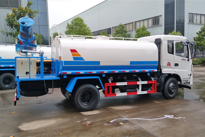 洒水车底盘选装驾驶室;侧喷为选装件;品名:水;密度:1000千克/立方米;有效容积:12立方米;轴距3950mm时,罐体外形尺寸(长×长轴×短轴)(mm):4600×2180×1390,外形尺寸长(mm)/前悬(mm)对应关系:7700/1250,7900/1450;轴距4500mm时,罐体外形尺寸(长×长轴×短轴)(mm):5200×2080×1290;外形尺寸长(mm)/前悬(mm)对应关系8250/1250,8450/1450;ABS型号为3631010-C2000,生产厂家为东科克诺尔商用车制动系统(十堰)有限公司;侧面防护装置材料材质:Q235,连接方式:焊接;后下部防护装置材料材质:Q235,连接方式:焊接,断面尺寸(宽×高):30×120(mm),离地高度:500mm. 吸程≧7米,洒水宽度≧14-16米,射程≧25-30米,引水时间<5min,流量60m3/h。前冲(喷)、后洒、带侧喷(花洒)、带后工作平台、平台上安装绿化洒水高炮(炮喷射形状可调节:直冲、大雨、中雨、毛毛雨、雾状、可连续调节,360°旋转),配消防接口,自流阀,滤网,带自吸自排功能。配备大功率专用洒水泵,泵可自吸自排,安装过滤网,带消防接口,可通过消防栓进水,带自流阀,随车选装20米绿化卷盘,可喷洒农药,罐体金属漆。罐体有椭圆和方圆罐两种,可根据用户的要求定做洒水车价格查询,程力洒水车价格查询,东风洒水车价格查询,程力专用汽车股份有限公司,洒水车厂家,销售电话18872992808吴经理洒水车价格查询,程力洒水车价格查询,东风洒水车价格查询,程力专用汽车股份有限公司,洒水车厂家,销售电话18872992808吴经理