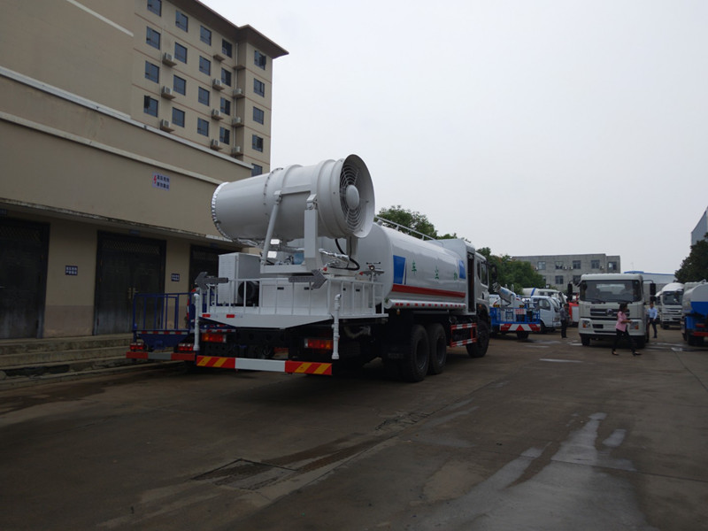 洒水车随底盘选装驾驶室;选装侧喷及农药炮;品名:水;密度:1000千克/立方米;有效容积:15.6立方米;罐体外形尺寸(长×长轴×短轴)(mm):6600×2300×1500;ABS吸程≧7米,洒水宽度≧14-16米,射程≧25-30米,引水时间<5min,流量60m3/h。前冲(喷)、后洒、带侧喷(花洒)、带后工作平台、平台上安装绿化洒水高炮(炮喷射形状可调节:直冲、大雨、中雨、毛毛雨、雾状、可连续调节,360°旋转),配消防接口,自流阀,滤网,带自吸自排功能。配备大功率专用洒水泵,泵可自吸自排,安装过滤网,带消防接口,可通过消防栓进水,带自流阀,随车选装20米绿化卷盘,可喷洒农药,罐体金属漆。罐体有椭圆和方圆罐两种,可根据用户的要求定做。