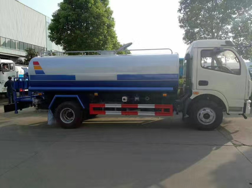 东风9吨洒水车,随底盘选装驾驶室;品名:水,密度:1000千克/立方米,有效容积9.2立方米,罐体尺寸(长×宽×高)(mm):4200×2980×1280;ABS系统生产厂家,型号 : 吸程≧7米,洒水宽度≧14-16米,射程≧25-30米,引水时间<5min,流量60m3/h。前冲(喷)、后洒、带侧喷(花洒)、带后工作平台、平台上安装绿化洒水高炮(炮喷射形状可调节:直冲、大雨、中雨、毛毛雨、雾状、可连续调节,360°旋转),配消防接口,自流阀,滤网,带自吸自排功能。配备大功率专用洒水泵,泵可自吸自排,安装过滤网,带消防接口,可通过消防栓进水,带自流阀,随车选装20米绿化卷盘,9吨洒水车,9吨东风洒水车厂家价格,9吨东风洒水车多少钱,洒水车厂家销售电话18872992808吴经理