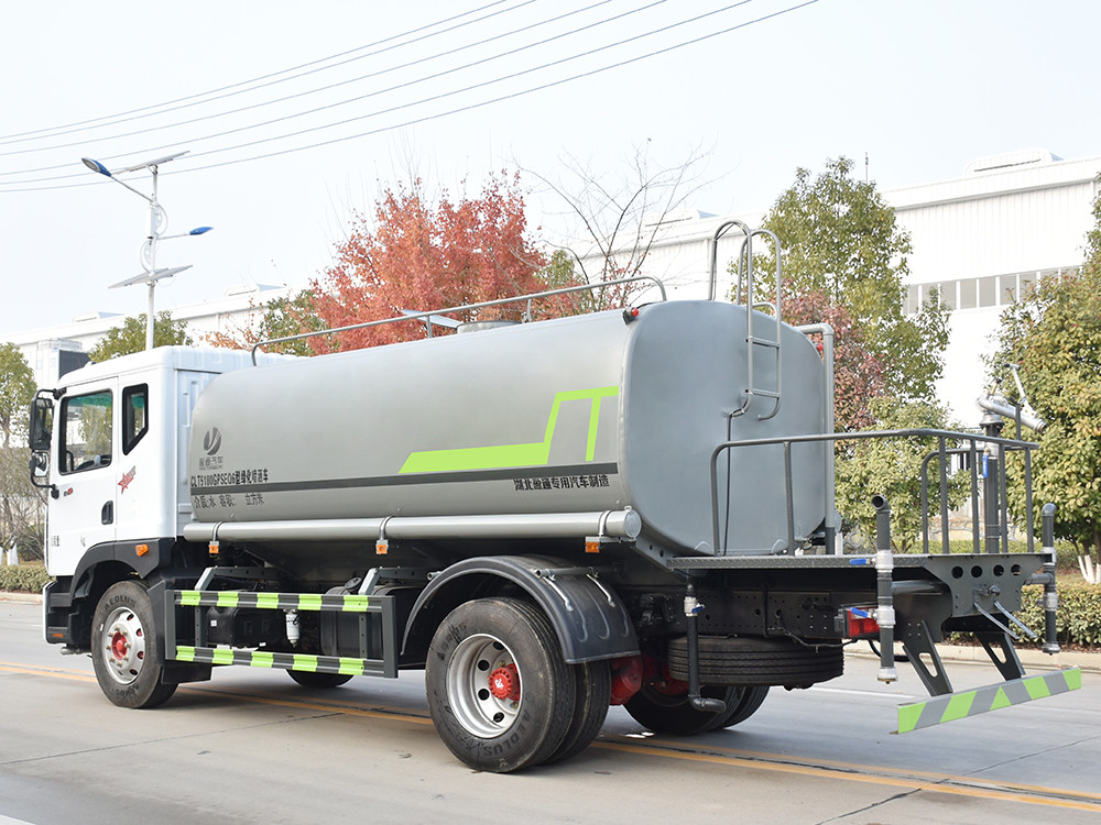承德洒水车产品配置 1.底盘配置: 发动机玉柴 165 马力(四缸),法士特 8 档变速箱,2315 驾驶 室,3.9T 前桥,8T 后桥,9.00 钢丝胎,轴距 3950,250 大梁,断气刹, 空调,电动玻璃,中控锁2.上装配置: 1、罐体约为 12 方, 2、边灯带电,罐体尾部上方标配 2 个红色示宽灯, 3、标配前喷为鸭嘴直冲,标配后冲,用户可根据自己的需求,来调 整对冲位置。 4、冲孔平台(承载能力加强),炮筒后盖为定制型螺栓卡扣, 5、前喷、后冲、后洒、侧喷,绿化高炮开关球阀均采用 50 大通经 不锈钢球阀, 6、新式轴承式水炮,更加耐用, 7、60-90 型水泵, 8、防腐法兰垫片, 9、铝制后洒,不易炸开 10、罐体自动焊(美国林肯焊机及电源),拼板自动焊接,封头环 缝焊接,无气孔,焊缝美观。 11、侧护网、后保险杠、均为螺栓连接,方便拆卸,维修方便。 12、塑料挡泥板,替代铁挡泥板,更加轻便,用螺栓连接,方便拆 卸。 13、前部、后部主管连接处为 6 孔圆法兰,不易冲垫