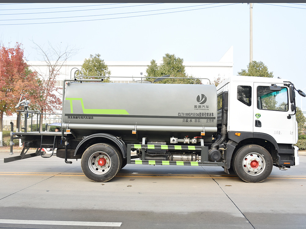 沧州洒水车产品主要技术参数 序号 名称 型号、规格 1 整车型号 CLT5180GPSEQ6 型绿化喷洒车 2 发动机型号 D4.0NS6B195 3 发动机马力/功率 康明斯 195 马力/143KW 4 发动机排量 4000ML 5 变速箱 法士特 8 档(带高低档) 6 轮胎规格 275 真空胎 7 轴距 3950 8 总质量 18000KG 9 整备质量 6480KG 10 额定载质量 11300KG 11 整车尺寸(长×宽×高) 7.75*2.5*3.3 12 罐体容积 12 方 13 燃料种类 柴油 14 排放标准 国六 15 水泵型号 60/90 16 罐体材质 Q235 碳钢