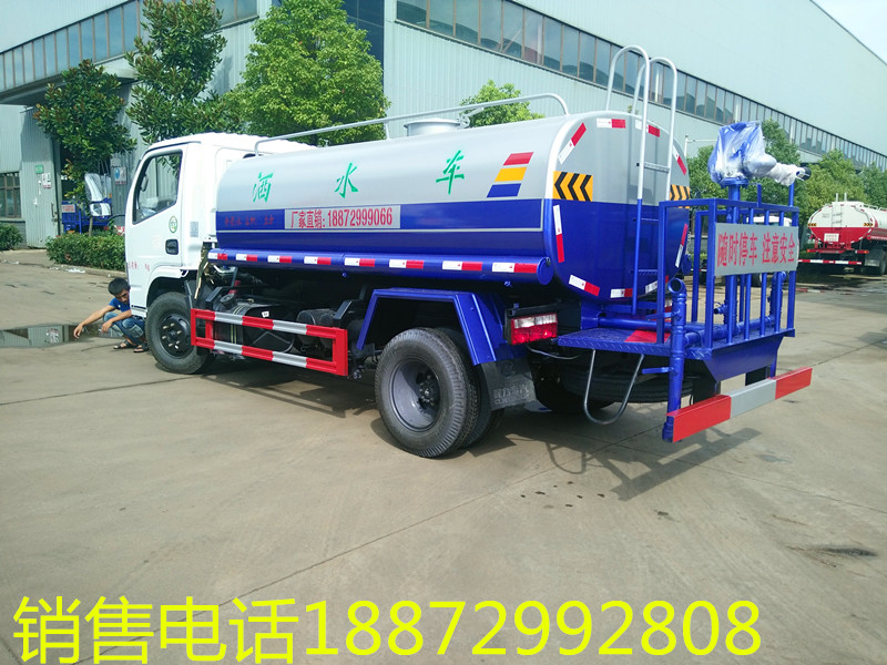 1、随底盘选装驾驶室前面罩以及前雾灯。2、罐体有效容积:4.06立方米,罐体外形尺寸(长×长轴×短轴关系为(mm): 3400×1600×1100, 吸程≧7米,洒水宽度≧14-16米,射程≧25-30米,引水时间<5min,流量60m3/h。前冲(喷)、后洒、带侧喷(花洒)、带后工作平台、平台上安装绿化洒水高炮(炮喷射形状可调节:直冲、大雨、中雨、毛毛雨、雾状、可连续调节,360°旋转),配消防接口,自流阀,滤网,带自吸自排功能。配备大功率专用洒水泵,泵可自吸自排,安装过滤网,带消防接口,可通过消防栓进水,带自流阀,随车选装20米绿化卷盘,可喷洒农药,罐体金属漆。罐体有椭圆和方圆罐两种,可根据用户的要求定做 发动机可选,云内,朝柴 ,锡柴,全柴