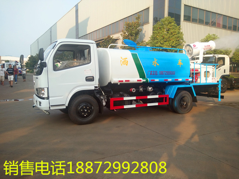 随底盘选装驾驶室;品名:水,密度:1000千克/立方米,有效容积4.09立方米,罐体尺寸(长×宽×高)(mm):3400×1600×1100;ABS吸程≧7米,洒水宽度≧14-16米,射程≧25-30米,引水时间<5min,流量60m3/h。前冲(喷)、后洒、带侧喷(花洒)、带后工作平台、平台上安装绿化洒水高炮(炮喷射形状可调节:直冲、大雨、中雨、毛毛雨、雾状、可连续调节,360°旋转),配消防接口,自流阀,滤网,带自吸自排功能。配备大功率专用洒水泵,泵可自吸自排,安装过滤网,带消防接口,可通过消防栓进水,带自流阀,随车选装20米绿化卷盘,可喷洒农药,罐体金属漆。罐体有椭圆和方圆罐两种,可根据用户的要求定做 发动机可选,云内,朝柴 ,锡柴,全柴