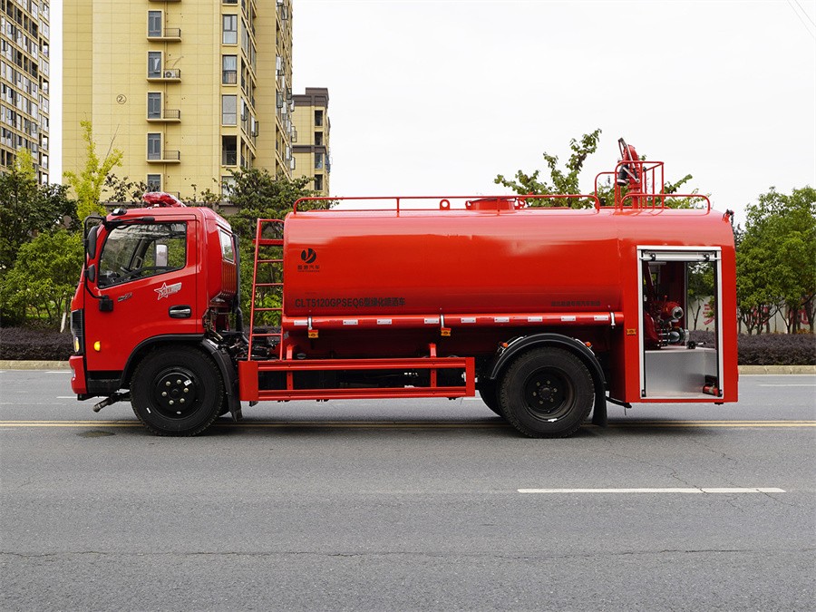 消防洒水车,又称消防洒水两用车、洒水消防两用车、森林消防洒水车、学校消防洒水车、机 场消防洒水车、社区消防洒水、街道及乡镇和乡村消防洒水功能。是一款集消防车和洒水车于一体的 两用车,是介于消防车与洒水车之间,具有消防洒水一体化用途,与消防车相比虽缺少器材箱,但与 消防车的射程相同,具有同样的消防功能。 功能介绍:与洒水车相比,继承了洒水车的全部功能,同时也弥补了洒水车射程小,压力小等 问题。消防洒水车除了装备消防水泵及器材以外,还设有较大容量的贮水罐及水枪、水炮等。可将水 和消防人员输送至火场独立进行扑救火灾。它也可以从水源吸水直接进行扑救,或向其他消防车和灭 火喷射装置供水。优于消防车的功能:因为没有消防车器材箱,底盘高度及车辆宽度更适应山间、乡 镇、乡村的路况,是森林消防、乡镇和乡村消防的有利消防工具。
