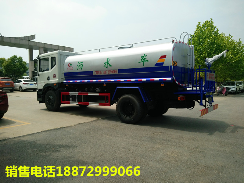 东风15吨洒水车随底盘选装驾驶室;品名:水;密度:1000千克/立方米;有效容积:11.45立方米;外形尺寸长(mm)/轴距(mm)/后悬(mm)/罐体尺寸(长×长轴×短轴)(mm)对应关系洒水车吸程≧7米,洒水宽度≧14-16米,射程≧25-30米,引水时间<5min,流量60m3/h。前冲(喷)、后洒、带侧喷(花洒)、带后工作平台、平台上安装绿化洒水高炮(炮喷射形状可调节:直冲、大雨、中雨、毛毛雨、雾状、可连续调节,360°旋转),配消防接口,自流阀,滤网,带自吸自排功能。配备大功率专用洒水泵,泵可自吸自排,安装过滤网,带消防接口,可通过消防栓进水,带自流阀,随车选装20米绿化卷盘,可喷洒农药,罐体金属漆。罐体有椭圆和方圆罐两种,可根据用户的要求定做。 装置等部件组成。水泵、取力器、球阀、滤网均为国家标准产品,具有性能优良, ★ 罐体为椭圆形或方形,采用武钢优质碳钢板制成,罐体仓内1.5米一道隔板,具有防波防荡作用, |