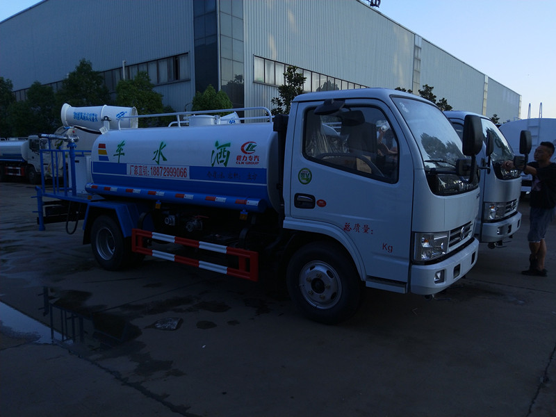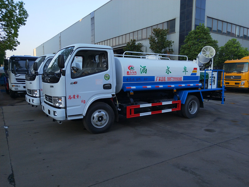 东风5吨洒水车-喷雾车-程≧7米,洒水宽度≧14-16米,射程≧25-30米,引水时间<5min,流量60m3/h。前冲(喷)、后洒、带侧喷(花洒)、带后工作平台、平台上安装绿化洒水高炮(炮喷射形状可调节:直冲、大雨、中雨、毛毛雨、雾状、可连续调节,360°旋转),配消防接口,自流阀,滤网,带自吸自排功能。配备大功率专用洒水泵,泵可自吸自排,安装过滤网,带消防接口,可通过消防栓进水,带自流阀,随车选装20米绿化卷盘,