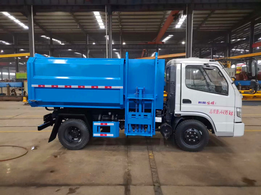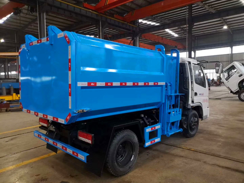 挂桶式垃圾车(自装卸式垃圾车)介绍:挂桶式垃圾车又称自装卸式垃圾车,由密封式垃圾厢、液压提升翻转系统、操作系统组成。垃圾桶内垃圾翻倒上下一次工作循环时间≤50秒。可选配全国通用塑料垃圾桶和铁桶,能实现一台车与多个垃圾桶联合作业,循环运输,充分提高了车辆的运输能力,节省财务预算。厢体密封性好,无二次污染,可运输各类垃圾,特别适用于短途运输和转运垃圾,如环卫部门对城镇垃圾的清理、运输等。