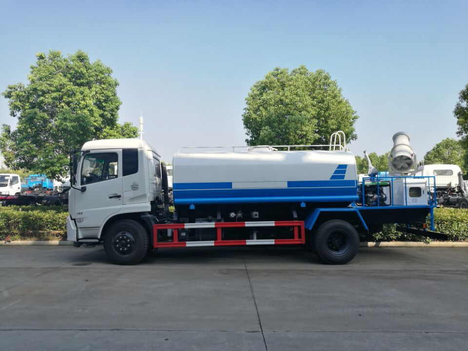 上装配置:采用4毫米厚度优质武钢碳钢材料,方圆型罐体,罐体公告容积:7.35方,实际容积8.3方。罐体一次性卷压成型,自动埋弧焊焊接,选用全国排名第一的随州亿丰泵,带前冲后洒,后高炮带工作平台,洒水炮可360°旋转。高炮可调节为柱状、雾状、毛毛雨状,最大扬程28米以上、侧喷功能,前冲工作范围12米以上,侧喷工作范围6米以上,可自吸自排,自吸高度7米以上,洒水车电音乐提示行人, 高音喇叭,洒水均匀,冲击力强劲,路面覆盖率高,作业效率高。配备抑尘车专用雾炮。