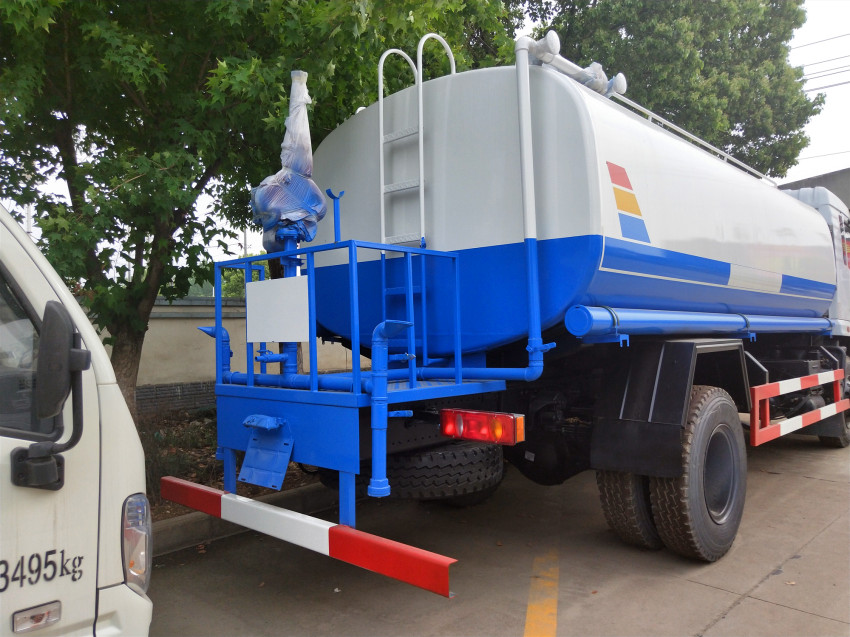 罐体容积:12立方,罐体采用武钢碳钢国标标准板材制作,洒水车专用泵(威龙泵60/90),前冲(喷),后洒,带侧喷(花洒),带后工作平台,平台上装绿化洒水高炮(炮喷射形状可调节:直冲,大雨,中雨,毛毛雨,雾态,可连续调节,360度旋转),配消防接口,自流阀,滤网,带自吸自排功能,标配2根水管,可选装雾炮,其余厂家标配。