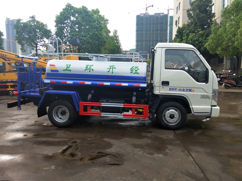 改装配置:罐体用4MM碳钢板制作,罐内隔板具有防波作用,以减低汽车行驶时罐体液体的冲击。整车带一个专用洒水泵(垂直最大吸程6米),洒水宽度14米,射程28米。多功能洒水车配备2个前冲(喷)(能将路面泥巴、尘土、垃圾冲干净);2个后洒(能均匀地将水洒在路面,一次洒水宽度14米)、2个侧喷(花洒)(能均匀地将路旁绿化带浇灌)、带1个后工作平台,平台上安装1个绿化洒水高炮(洒水炮可全方位旋转,可连续调成直冲状、大雨、小雨、毛毛雨,雾状可调节冲洗高大树木),引水时间<5min,流量90m3/h。带1个消防接头,带1个自流阀,1个过滤装置、人性化爬梯及侧防护栏,安装洒水音乐喇叭。