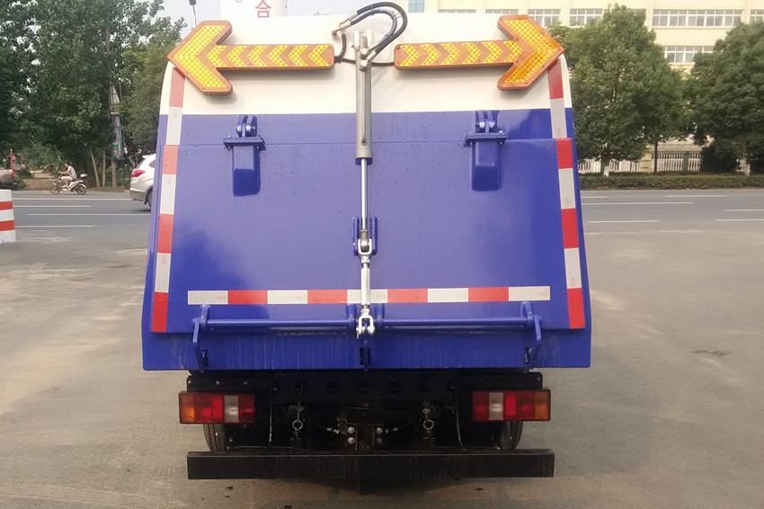 6、福田扫路车垃圾箱采用双层内胆不锈钢结构,容积2m3,内部加装过滤网板,能有效地防止树叶、塑料袋之类的轻飘物堵塞风口及灰尘的排出。内置喷雾压尘装置,最大限度的利用了垃圾箱装载垃圾的空间。厢体采用倾翻卸料。