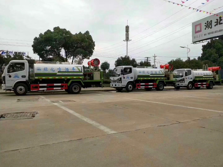 功能配置:带前部冲洗路面喷洒装置、后部扇形降尘喷洒装置,两侧面喷洒装置,带后部工作平台、平台上安装绿化洒水炮(炮喷射形状可调),可调直冲状、大雨、中雨、毛毛雨,可连续调节,最大射程可达28米,垂直吸程6.5米,扬程14米,另加装高效率车载式风送喷雾机,喷药炮雾化效果好,可远程喷雾,水平射程达25米。带消防接口、自流阀,可自吸自排。