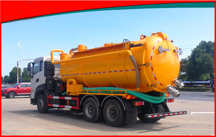 高压清洗车吸污车也称联合疏通车,是以二类原装底盘的基础上加以给装而成,上装部分为罐体,配置高压水泵工作, 高压泵型号:3DS-8/16、GYB-8/16 、压力:16-19Mpa 、流量:8m3/h 、胶管长度:60m、卷管力:1800 N 、胶管内径:φ25 mm 、接头型式 :0 、卷管速度:0-25m/min 、孔夹角度:15°,25° 推进力:≥180 N 。