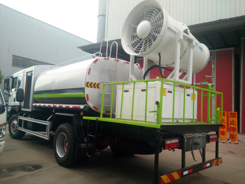 9吨-12吨喷雾洒水车,工程洒河池市隧道除尘防尘喷雾洒水车,东风153洒水车构造装配前喷后洒,前装有鸭形喷嘴或圆头冲嘴,后面装有圆柱开洒水喷嘴或莲蓬头喷嘴,后部有一工作平台,装配有高压水炮。后部还可装8个喷嘴(选装)喷水器一般用于冲洗街道。