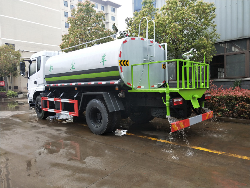 东风天锦12-15吨洒水车改装配置:罐体采用武钢优质碳钢板,采用国标5mm厚制作,罐体内设有隔浪板,具有防波浪作用,以减低汽车行驶时,对罐体的冲击,射程可达35米,垂直吸程≥7米,洒水宽度≥14-16米,带自吸自排功能,消防栓接口,前冲,后洒,侧喷,后工作平台带绿化水炮,绿化洒水炮(喷射形状可调),可调直冲状、大雨、中雨、毛毛雨,可连续调节,自流阀,三通滤网,2根3米输水管,金属漆,其它洒水车标配。