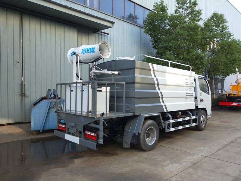 抑尘车吸程≧7米,洒水宽度≧14-16米,射程≧25-40米,引水时间<5min,流量60m3/h。前冲(喷)、后洒、带侧喷(花洒)、带后工作平台、平台上安装绿化洒水高炮(炮喷射形状可调节:直冲、大雨、中雨、毛毛雨、雾状、可连续调节,360°旋转),配消防接口,自流阀,滤网,带自吸自排功能。配备大功率专用洒水泵,泵可自吸自排,安装过滤网,带消防接口,可通过消防栓进水,带自流阀,此车尾部加装大功率农药喷洒炮,喷洒状态雾状,有效射程15-45米,外部平台带独立的机组。