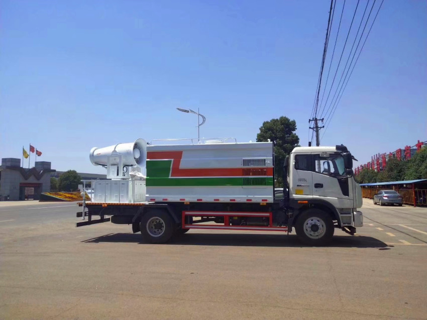 环卫洒水车吸程≧7米,洒水宽度≧14-16米,射程≧25-40米,引水时间<5min,流量60m3/h。前冲(喷)、后洒、带侧喷(花洒)、带后工作平台、平台上安装绿化洒水高炮(炮喷射形状可调节:直冲、大雨、中雨、毛毛雨、雾状、可连续调节,360°旋转),配消防接口,自流阀,滤网,带自吸自排功能。配备大功率专用洒水泵,泵可自吸自排,安装过滤网,带消防接口,可通过消防栓进水,带自流阀,此车尾部加装大功率农药喷洒炮,喷洒状态雾状,有效射程15-45米,外部平台带独立的机组。