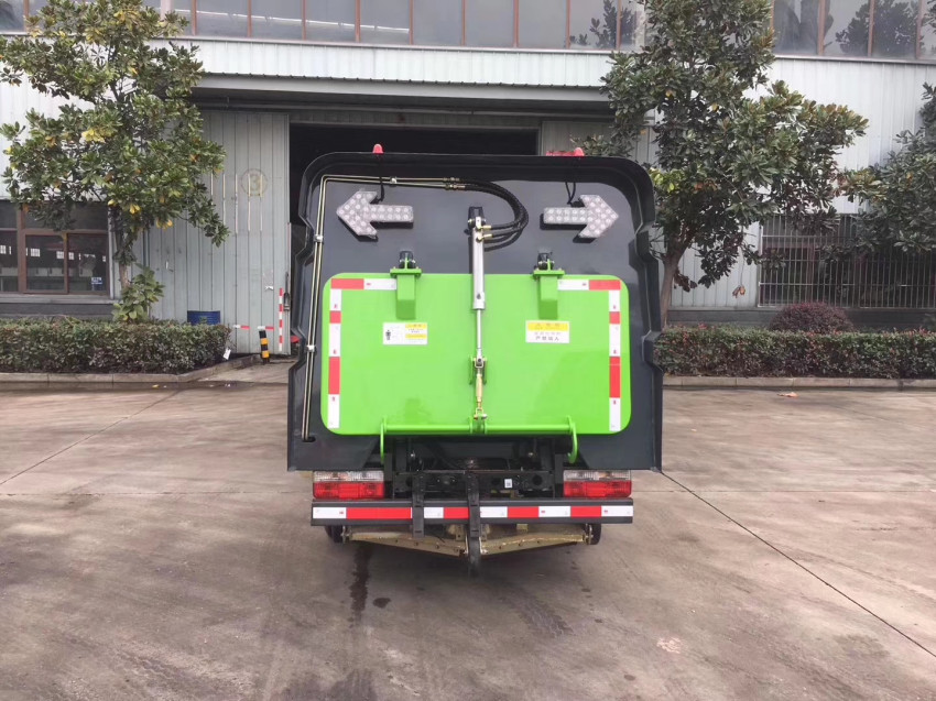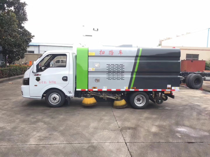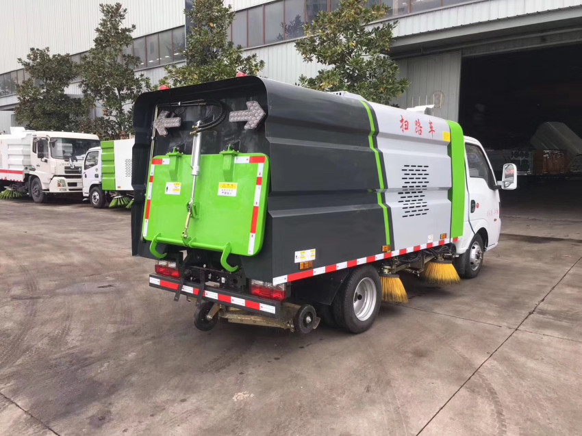 小型扫路车装标配:带4个扫盘、江铃副发动机、三洋马达、施耐德控制开关、海普瑞斯电磁阀组、无级变速自动离合器、免维护离心式自动风机、不锈钢垃圾箱、尾部LED箭头指示灯、手动泵应急系统、中联北极星电子水泵,垃圾举升自卸功能。