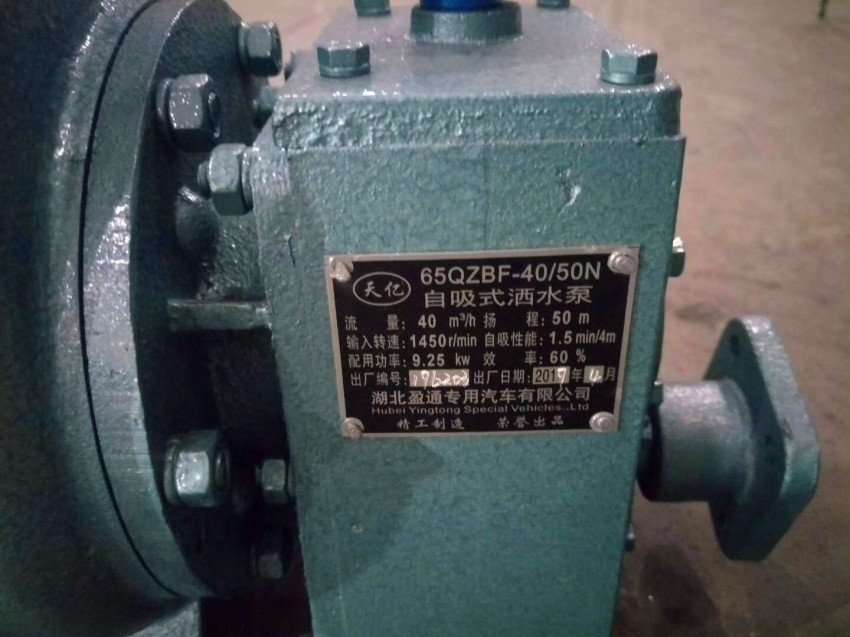 洒水车水泵洒水车专用型号:65QZB(F)50/50 流量(m3/h): 50m3,扬程(m):50,输出转速:1450, 轴功率(kw) : 15.5, 自吸高度(m): 4.5, 自吸时间(min/5m): 1.5, 效率:65%,备注:左、右旋转