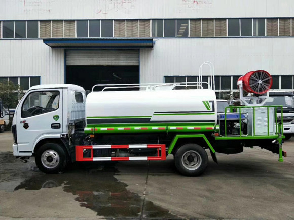 二、5方洒水车价格_程力5方洒水车价格大全,东风5吨洒水车9.8万,底盘采用东风小多利卡,玉柴115马力发动机,3300轴距,7.00钢丝胎,五档变速箱,带中控锁,电动窗,汽刹,带空调.有免征公告,有环保公告,上装配置:罐体一次性成型技术,大型自动焊接设备,烤漆工艺,防腐除锈,多层底漆、面漆喷涂。功能齐全,陪前冲、后洒、侧喷、绿化高炮,采用优质大功率水泵自吸自排,合理设计水路管道,气控取力器,罐体厚4MM,罐体仓内1.5米一道隔板,选装配置:威龙泵、喷雾机。