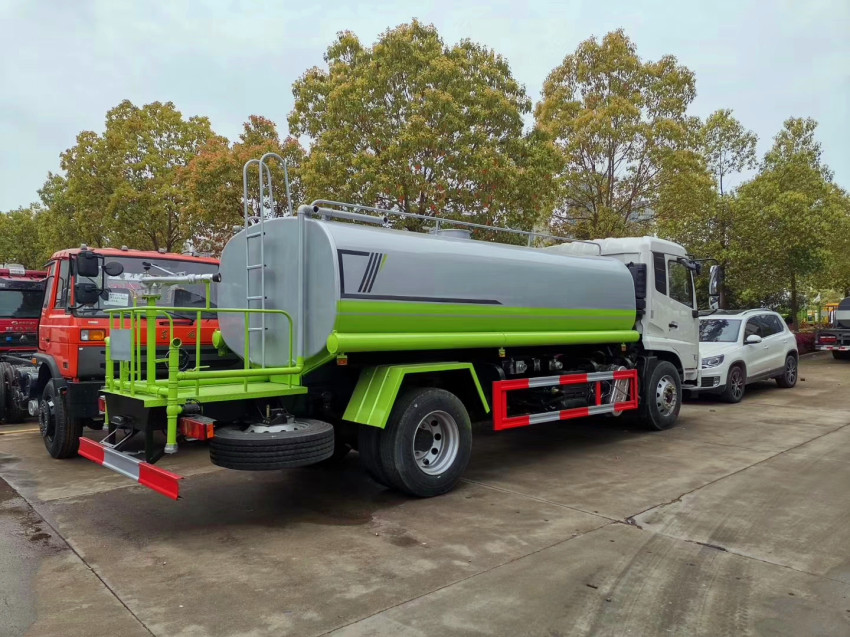 园林绿化洒水车价格及图片,东风创普15吨洒水车价格15.5-19.2万,采用东风创普D7L底盘,排半带卧可前翻驾驶室,康明斯190马力国五发动机,陕齿小八档变速箱,轴距4500mm,10吨后桥,10.00-20原厂尼龙胎,原厂abs,原厂空调,带方向助力,离合助力器,气刹制动。