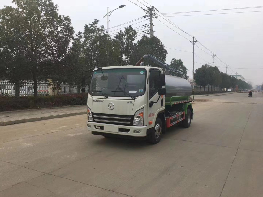 (3)东风多利卡吸污车/吸粪车朝柴120马力,金属平头宽体驾驶室,2.4吨前桥,4.2吨后桥,循环球式转向器,轮胎规格:8.25-16,罐体容积6立方米,单级旋片油封真空泵,垂直吸程≥8米, 工作压力400pa,抽满灌时间≤5分钟,排满灌时间≤4分钟.