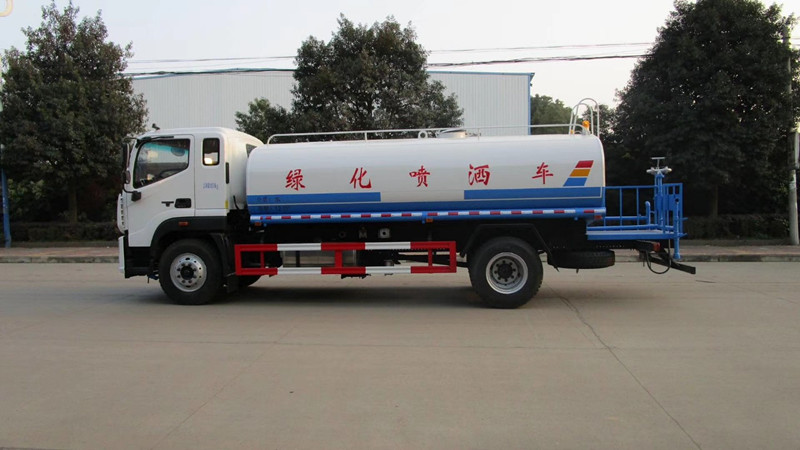 福田欧马可9.2吨洒水车上装设置:改装设置:罐体用4MM碳钢板建造,罐内隔板具有防波感化,以减低汽车行驶时罐体液体的打击。整车带一个公用洒水泵(垂直 大吸程6米),洒水宽度14米,射程28米。多功效洒水车装备2个前冲(喷)(能将路面泥巴、灰尘、渣滓冲清洁);2个后洒(能匀称将水洒正在路面,一次洒水宽度14米)、2个侧喷(花洒)(能匀称将路旁绿化带灌溉)、带1个后事情平台,平台上安装1个绿化洒水高炮(洒水炮可齐方位扭转,可继续调成直冲状、大雨、细雨、毛毛雨,雾状可调理树木),引水工夫<5min,流量90m3/h。带1个消防讨论,带1个自流阀,1个过滤装配、兽性化爬梯及侧防护栏,安装洒水音乐喇叭。