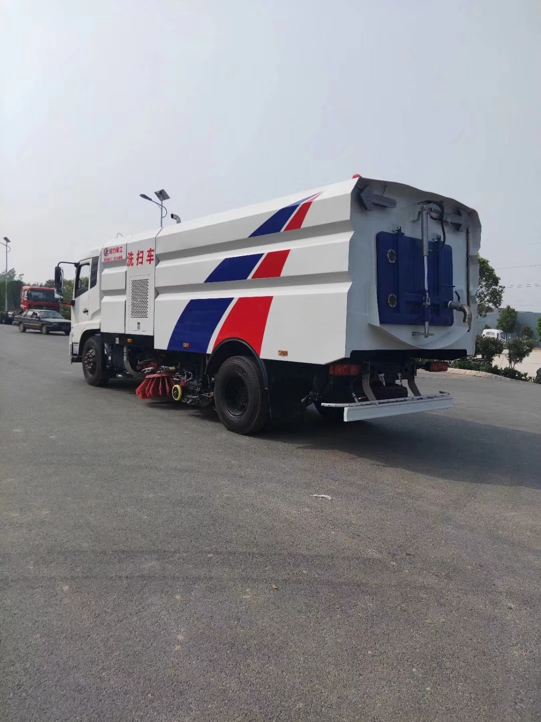 东风天锦扫路车中置4扫盘、后置吸盘、三洋马达、康明斯副发动机、施耐德控制开关、海普瑞思电磁阀组、无极变速自动离合器、免维护离心式风机、不锈钢垃圾箱、北极星电子水泵、垃圾箱举升自卸、尾部LED箭头灯、手动泵应急系统。可选装前冲后洒、垃圾箱自洁功能、倒车影像作业监控、前置雪铲、扫雪滚。