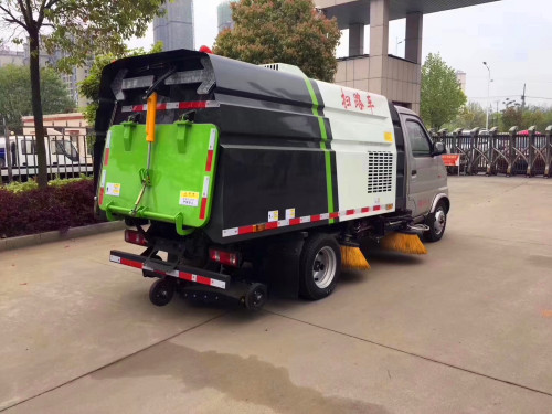 4、东风2吨小型扫路车采用中置4盘刷+后置吸盘的清扫结构,三段式工作,清扫效果更好。