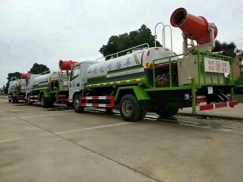 专用部分:带前冲、后洒、侧喷、后工作平台、尾部带绿化炮,带自吸自排洒水泵,后工作平台高压水炮直冲射程25-30米(可调成:直冲状、大雨、中雨、小雨、毛毛雨),整车带消防接头、自流阀。附送2根水管。加装30型雾炮,带8千瓦柴油发电机组,雾炮可以遥控操作