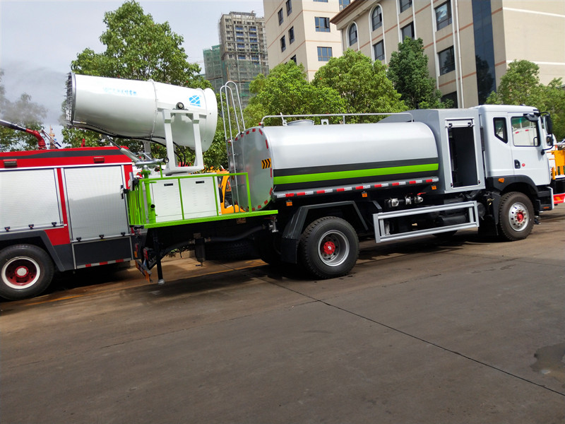 专用部分:带前冲、后洒、侧喷、后工作平台、尾部带绿化炮,带自吸自排洒水泵,后工作平台高压水炮直冲射程25-30米(可调成:直冲状、大雨、中雨、小雨、毛毛雨),整车带消防接头、自流阀。附送2根水管。加装30型雾炮,带8千瓦柴油发电机组,雾炮可以遥控操作。