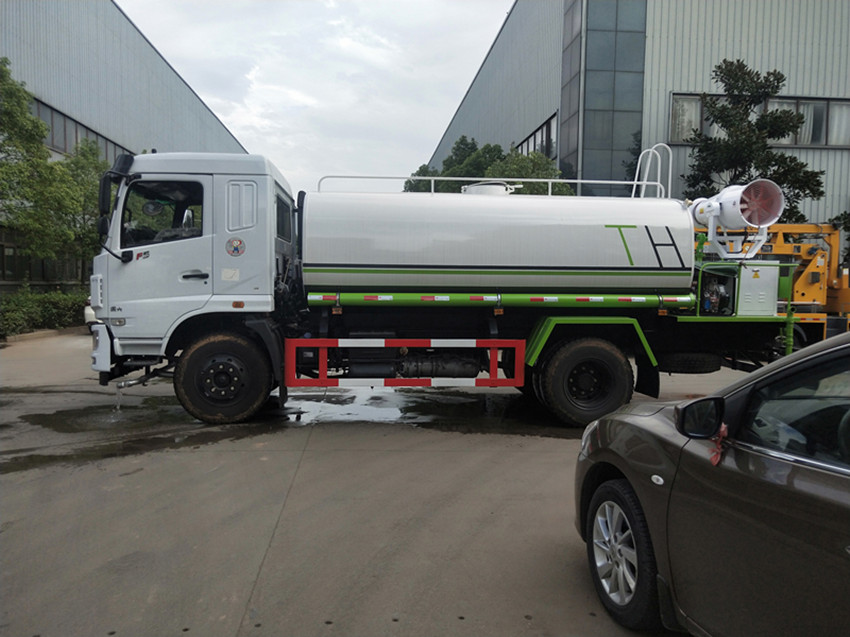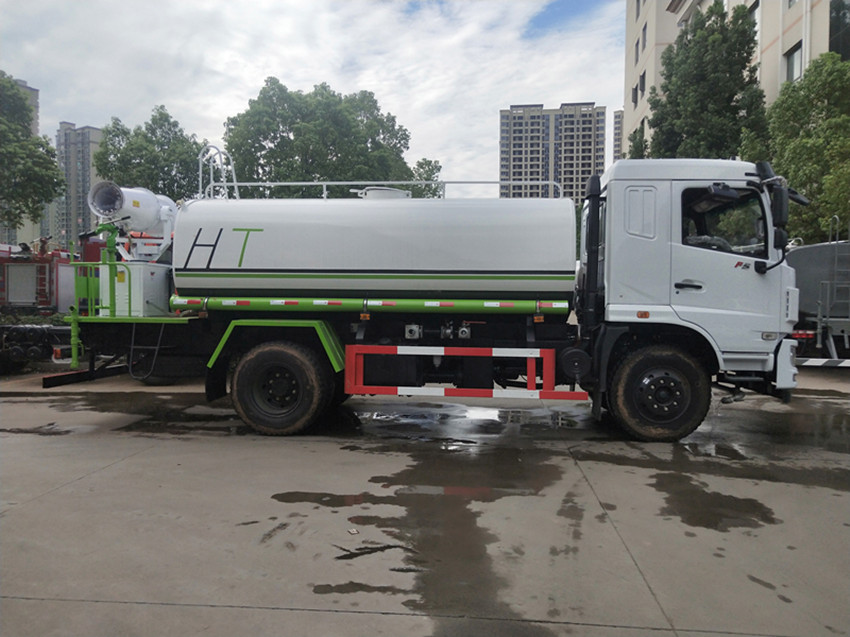 专用部分:带前冲、后洒、侧喷、后工作平台、尾部带绿化炮,带自吸自排洒水泵,后工作平台高压水炮直冲射程25-30米(可调成:直冲状、大雨、中雨、小雨、毛毛雨),整车带消防接头、自流阀。附送2根水管。加装30型雾炮,带8千瓦柴油发电机组,雾炮可以遥控操作