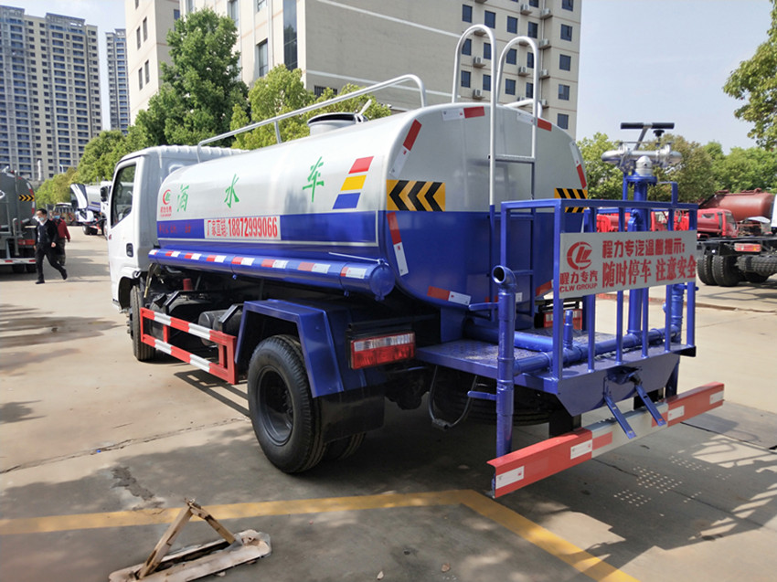 配备大功率专用洒水泵,泵可自吸自排,安装过滤网,带消防接口,可通过消防栓进水,带自流阀,随车选装20米绿化卷盘,可喷洒农药,罐体金属漆。罐体有椭圆和方圆罐两种,可根据用户的要求定做