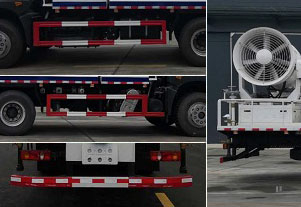 洒水车专用功能:前冲后洒,侧喷,高位花洒,罐体后带工作平台加护栏,平台上安装绿化洒水高炮,射程28米左右,可调节多种形态(大雨、中雨、雾状),配备大功率专用洒水泵,泵可吸自排,带自流阀,带消防接头,带过滤装置,两根吸水管。