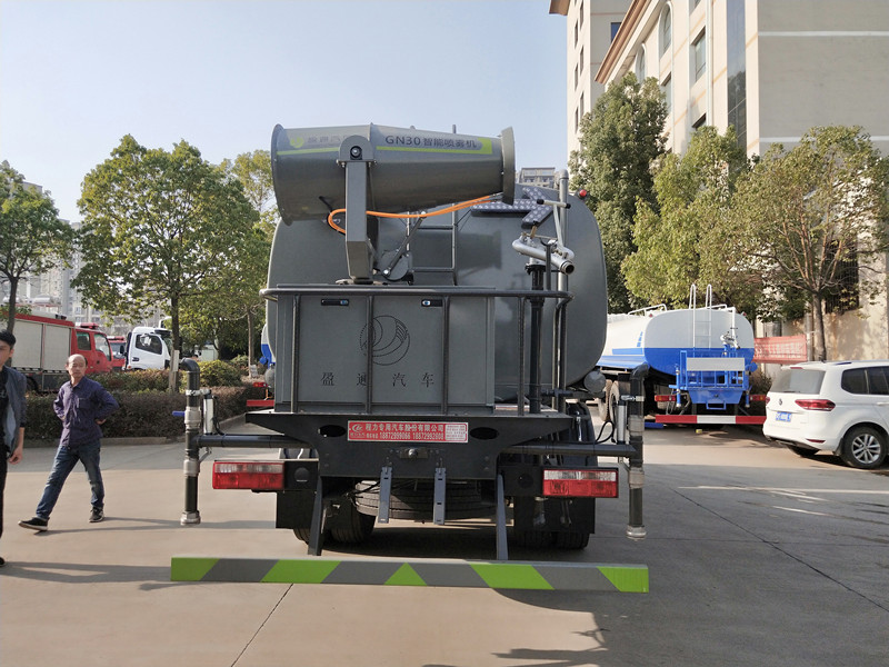 洒水车性能简介:吸程≧7米,洒水宽度≧14-16米,射程≧25-40米,引水时间<5min,流量60m3/h。前冲(喷)、后洒、带侧喷(花洒)、带后工作平台、平台上安装绿化洒水高炮(炮喷射形状可调节:直冲、大雨、中雨、毛毛雨、雾状、可连续调节,360°旋转),配消防接口,自流阀,滤网,带自吸自排功能。