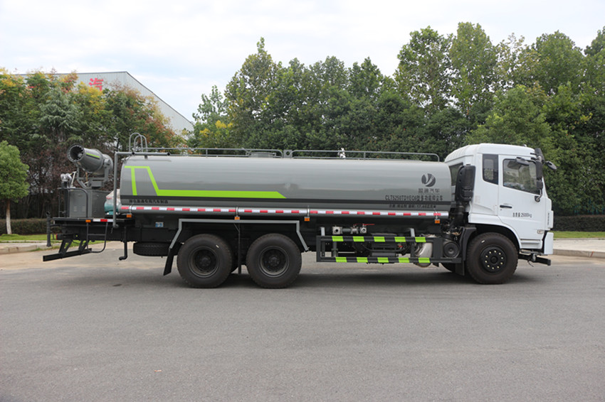 东风20立方洒水车上装配置:罐体容积20立方,罐体厚度4MM,前后封头5MM加厚型,罐体内双层隔板具有防波荡作用,以减轻汽车行驶时罐内液体冲击;装配程力专用洒水泵,前冲、后洒、侧喷、后平台带绿化洒水炮,洒水炮可全方位旋转,可连续调成直冲状、大雨、小雨、毛毛雨,其余标配。