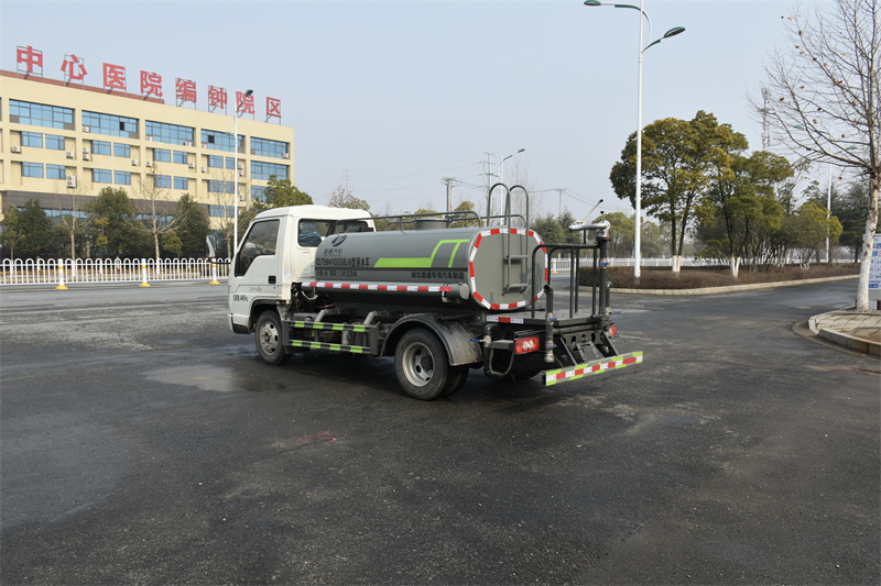 2吨洒水车罐体为椭圆形或方形,采用武钢优质碳钢板制成,罐体仓内1.5米一道隔板,具有防波防荡作用,还可按用户要求进行专业的防腐防锈处理,罐体外可用发泡或岩棉加装保温层起保温功能。可选装药盘,药泵、高压喷药设备、非车带泵动力等.、罐内防腐防锈、多方位进出水接头、气动阀、警灯等先进设施,以满足不同用户需求。