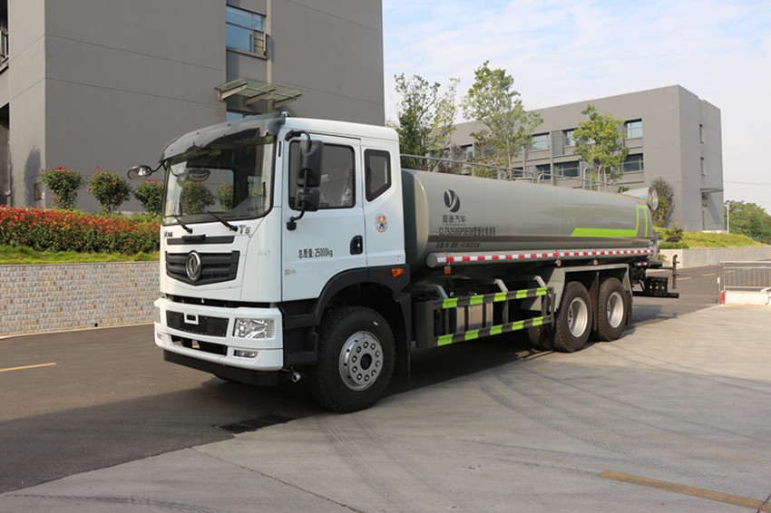 ABS型号:3631010-C2000,J ABS;ABS生产企业:东科克诺尔商用车制动系统(十堰)有限公司, 焦作博瑞克控制技术有限公司;选装描述:随底盘选装驾驶室,选装附件布局;侧后防护情况:侧、 后防护材料均为:Q235碳钢,连接方式均为:螺栓连接,后部防护截面尺寸(mm):120×50, 后部防护离地高度(mm):480;罐体有效容积(立方米)、罐体外形尺寸(mm):罐体有效容积:15.2立方米; 罐体外形尺寸(长×长轴×短轴)(mm):6900×2370×1360;专用功能及装置:该车主要用于城乡 园林绿化,路面喷洒,除尘和降温;主要装置为水罐及喷洒装置; |