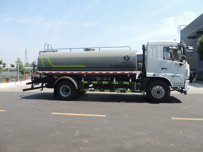 配备大功率专用洒水泵,泵可自吸自排,安装过滤网,带消防接口,可通过消防栓进水,带自流阀,随车选装20米绿化卷盘,可喷洒农药,罐体金属漆。罐体有椭圆和方圆罐两种,可根据用户的要求定做