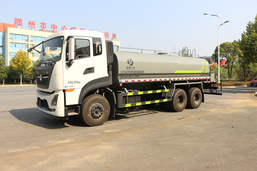 洒水车配备大功率专用洒水泵,泵可自吸自排,安装过滤网,带消防接口,可通过消防栓进水,带自流阀,随车选装20米绿化卷盘,可喷洒农药,罐体金属漆。罐体有椭圆和方圆罐两种,可根据用户的要求定做