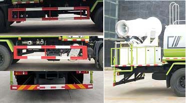 雾炮车罐体为椭圆形或方形,采用武钢优质碳钢板制成,罐体仓内1.5米一道隔板,具有防波防荡作用,还可按用户要求进行专业的防腐防锈处理,罐体外可用发泡或岩棉加装保温层起保温功能。可选装药盘,药泵、高压喷药设备、非车带泵动力等.、罐内防腐防锈、多方位进出水接头、气动阀、警灯等先进设施,以满足不同用户需求。
