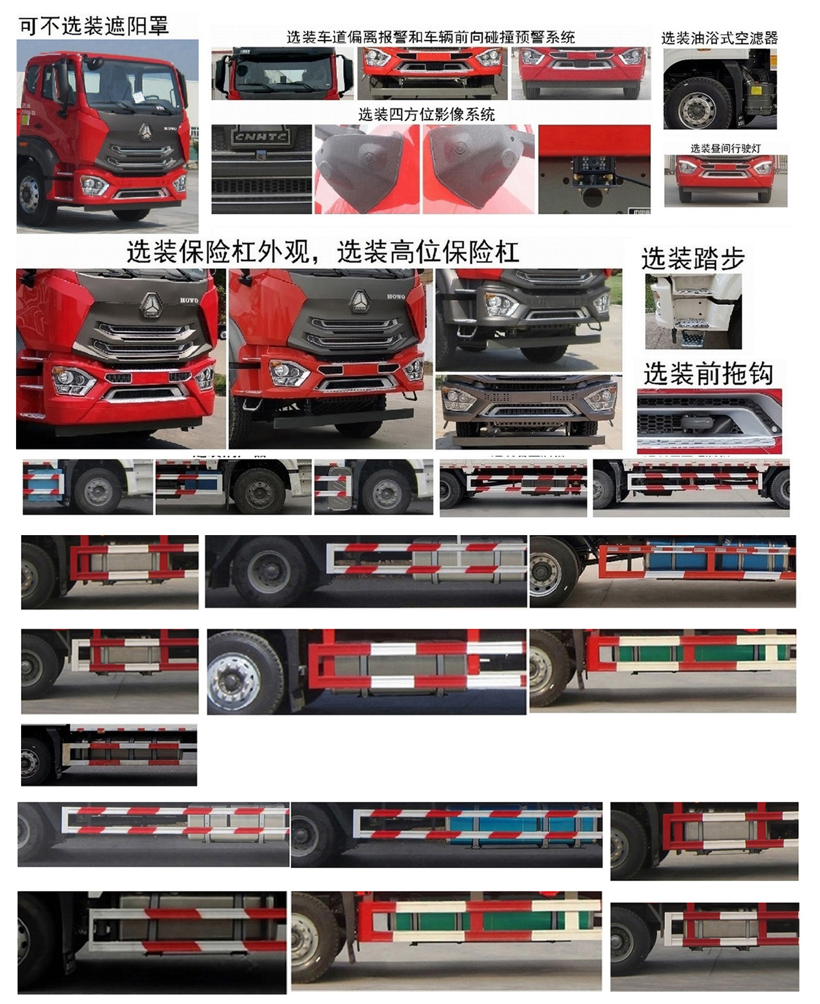 重汽多功能抑尘车采用轴距(mm):4500,4700. 该车主要用于城市抑尘、降霾、除尘;主要专用装置为储液罐,喷雾装置; 整车长/轴距/后伸对应关系为(mm): 8650/4500/无后伸,8850/4700/无后伸,9300/4500/650,9500/ 2、侧、后防护材料:Q235;侧面及后防护均采用焊接连接,后防护装置断面尺寸(宽×高) (mm):50×150, 后防护离地高度:450mm;选装喷雾装置及摆放样式;选装罐体后封头波纹样式;3、当整备质量为:9380kg时, 载质量为:8490kg(2人),8425kg(3人),当整备质量为:10380kg时,载质量为:7490kg(2人),7425kg(3人), 罐体有效容积:9.39立方米,罐体尺寸(长×宽×高)(mm)为:3000×2450×1780。4、随底盘选装驾驶室; 安装限速装置,限速89km/h。ABS系统控制器生产企业/型号为威伯科(上海)管理有限公司/4460046300。 5、仅采用发动机型号:MC07.25-60,MC07.27-60,MC07.29-60,MC07.31-60,MC07H.33-60, WP4.6NQ220E61,WP6H245E61,WP6H270E61,WP7.300E61.选装底盘附件储气筒尿素罐电瓶等安装位置。 |