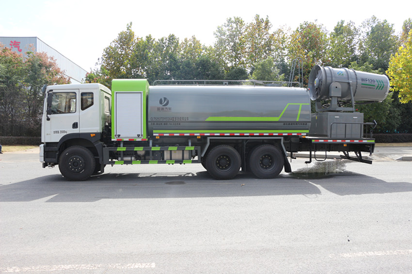 性能简介:吸程≧7米,洒水宽度≧14-16米,射程≧25-40米,引水时间<5min,流量60m3/h。前冲(喷)、后洒、带侧喷(花洒)、带后工作平台、平台上安装绿化洒水高炮(炮喷射形状可调节:直冲、大雨、中雨、毛毛雨、雾状、可连续调节,360°旋转),配消防接口,自流阀,滤网,带自吸自排功能。安装30-80米雾炮,雾炮可以遥控操作,可以手动操作,按雾炮大小配多大功率发电机