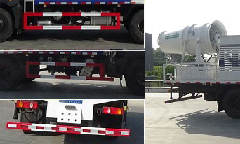 专用装置为抑尘雾炮,用于城市抑尘.整车长/前悬/轴距/后悬对应关系(mm)为:/3000(2800)). 侧面防护材料:Q235A碳钢.连接方式:左右侧面采用螺栓连接.后防护装置材料:Q235A碳钢. 连接方式:采用螺栓连接.后部防护断面尺寸(mm):120×45,后部防护离地高度(mm):450.装备ABS, ABS型号及生产厂家为:3631010-C2000/东科克诺尔商用车制动系统(十堰)有限公司,J ABS/焦作博瑞克 控制技术有限公司.随底盘选装驾驶室.选装底盘部件安装位置.选装不同的雾炮样式. |
