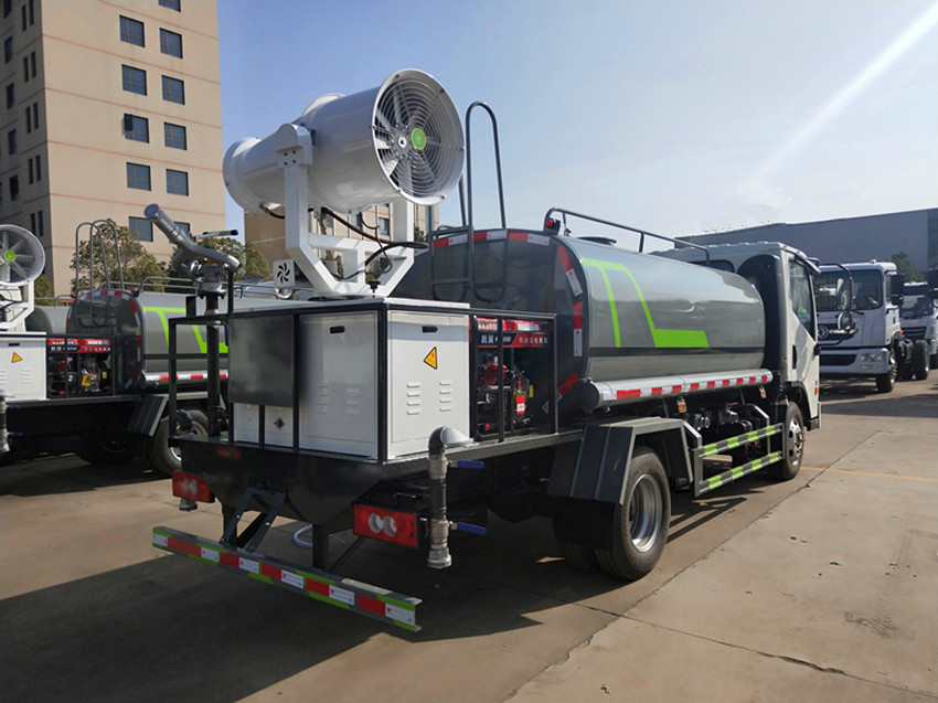 性能简介:吸程≧7米,洒水宽度≧14-16米,射程≧25-40米,引水时间<5min,流量60m3/h。前冲(喷)、后洒、带侧喷(花洒)、带后工作平台、平台上安装绿化洒水高炮(炮喷射形状可调节:直冲、大雨、中雨、毛毛雨、雾状、可连续调节,360°旋转),配消防接口,自流阀,滤网,带自吸自排功能。安装30-80米雾炮,雾炮可以遥控操作,可以手动操作,按雾炮大小配多大功率发电机