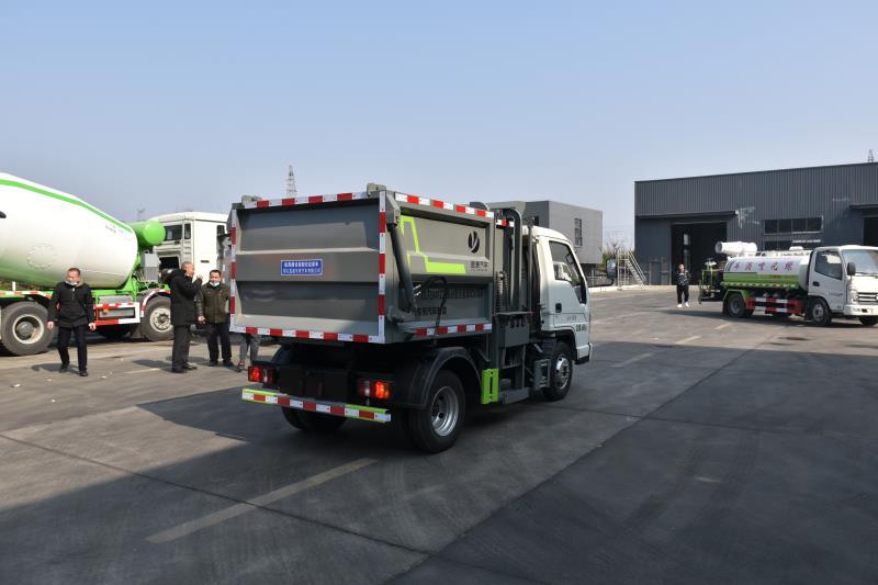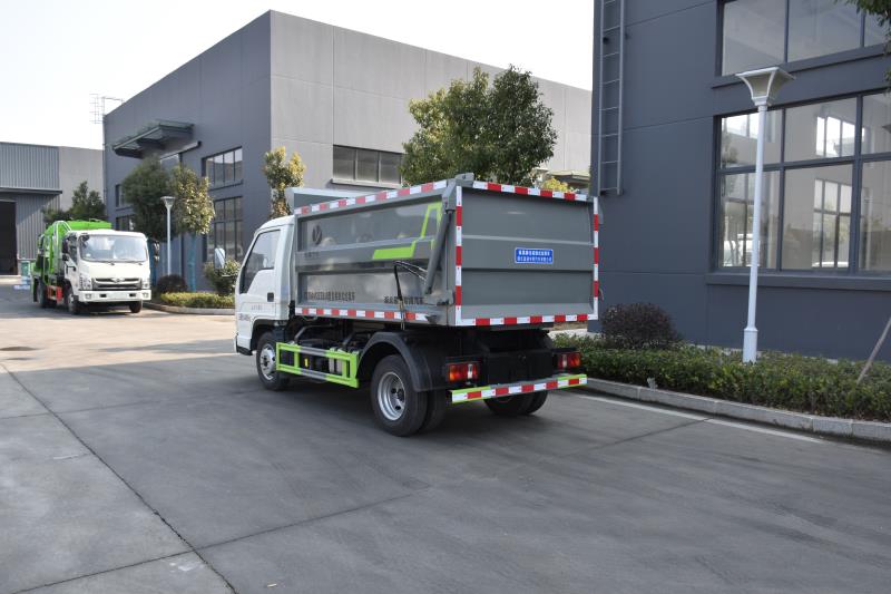 改装容积3~4立方米,箱体采用Q235碳钢,板材边三底四,国内知名油缸、多路阀,挂桶提升机构,外部操作,后盖手动开启。
