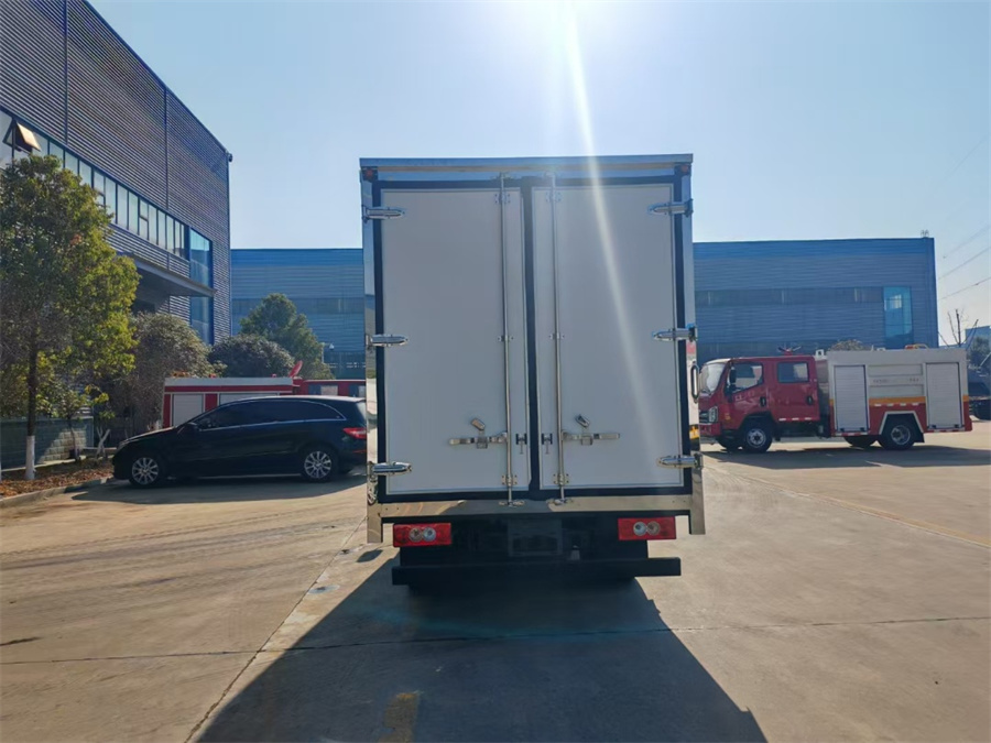 (3)厢体配件:厢体周边铝合金包边,不锈钢包角,不锈钢门锁铰链,不锈钢门框及合页,厢体内节能LED照明灯,后双开门,侧边单开门。